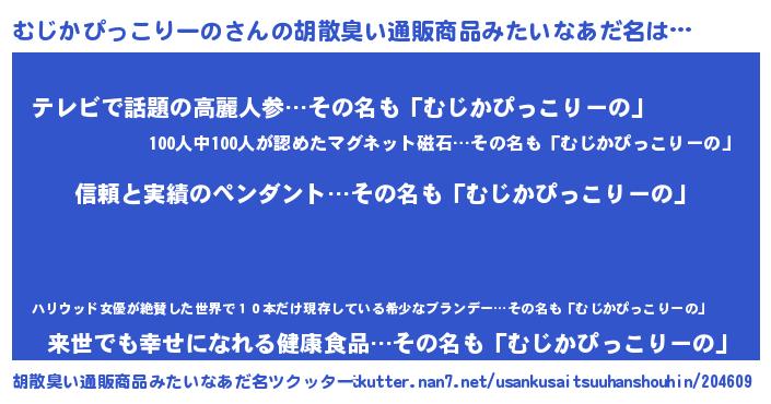 | 意味不明あだ名 | 『とにかく怪しいむじかぴっこりーの』 |