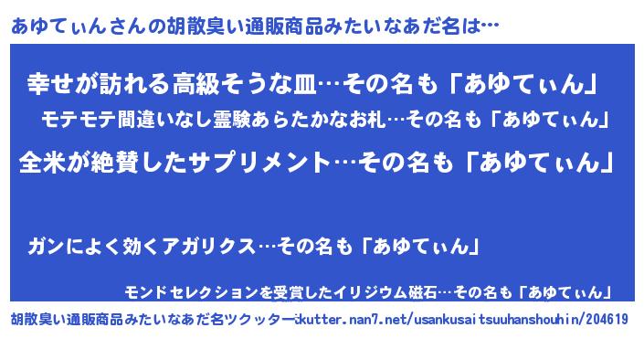 | 意味不明あだ名 | 『とにかく怪しいあゆてぃん』 |