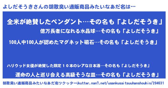 | 意味不明あだ名 | 『眠気覚ましガムよしだそうき味』 |