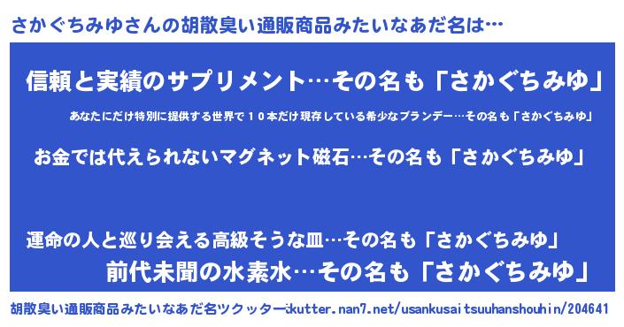 | ヘコむあだ名 | 『さかを』『さかぐちみゆ(笑)』 |