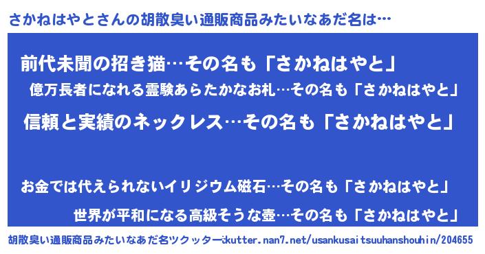 | ヘコむあだ名 | 『さかっ子』『さかねはやと(笑)』 |