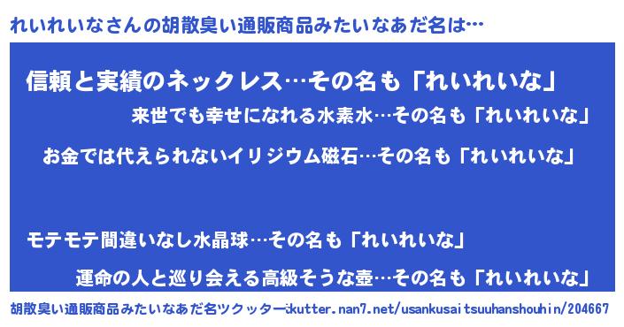 | ヘコむあだ名 | 『れいっ子』『牛乳』『れいにゅー』 |