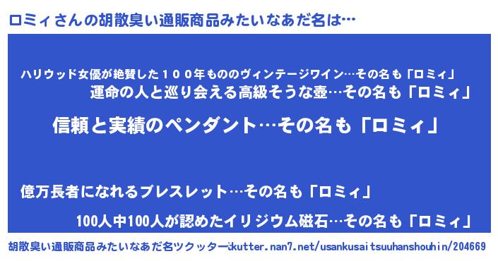 | 可愛いあだ名 | 『ロミぷりん』『ロっミぃー』 |
