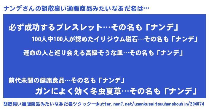 | ポケモン風あだ名 | 『ナンデダネ』『ナンチュウ』 |