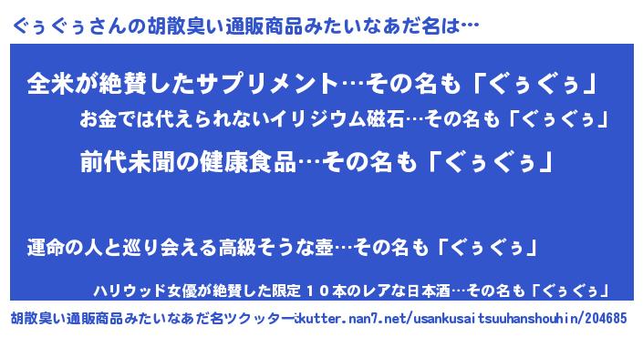 | ヘコむあだ名 | 『ぐぅぐぅ(笑)』『ぐぅお』 |