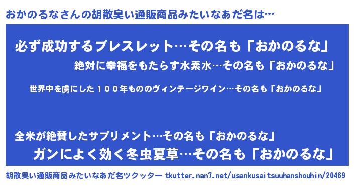 | 意味不明あだ名 | 『住所不定無職おかのるな(9歳)』 |