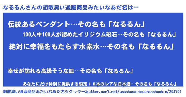 | 女子向けラノベタイトル風あだ名 | 『異世界で失敗しない100のなるるん』 |