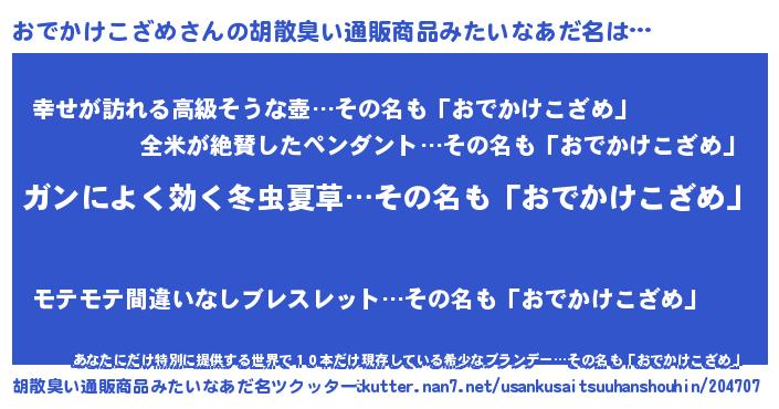 | 意味不明あだ名 | 『自称おでかけこざめ』 |