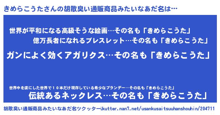 | 欧米人風あだ名 | 『トリンドルきめらこうた』 |