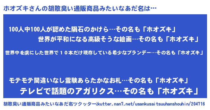 | 意味不明あだ名 | 『住所不定無職ホオズキ(71歳)』 |