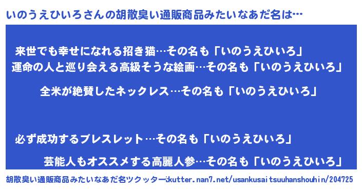 | ヘコむあだ名 | 『いの太郎』『いのうえひいろ(笑)』 |
