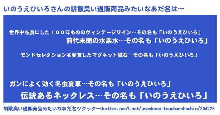 | ヘコむあだ名 | 『いのお』『いのうえひいろ(小並感)』 |