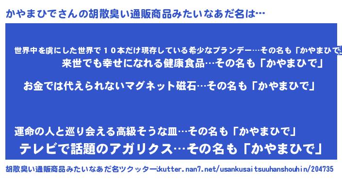 | 女子向けラノベタイトル風あだ名 | 『かやまひで恋絵巻』 |
