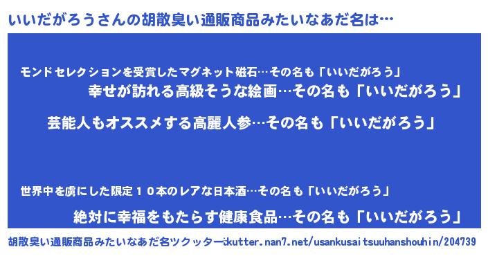 | 意味不明あだ名 | 『自称いいだがろう』 |