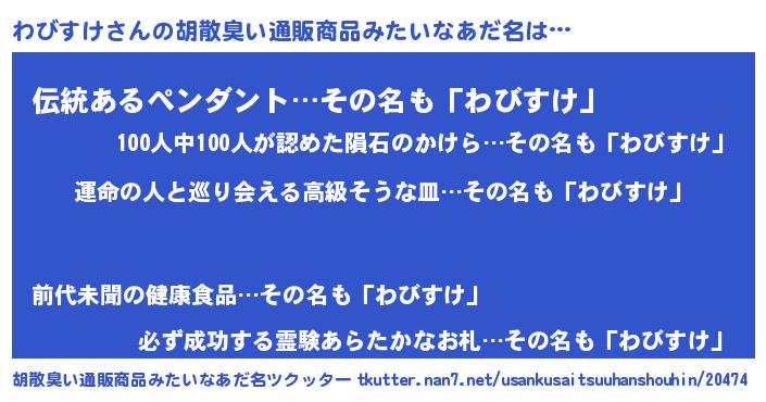 | 欧米人風あだ名 | 『わびすけクリステル』 |
