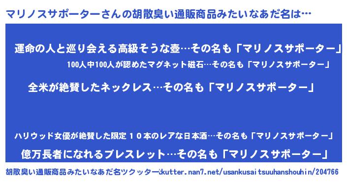 | 男性向けラノベタイトル風あだ名 | 『マリノスサポーターの嫁は女の子じゃないと思った?』 |