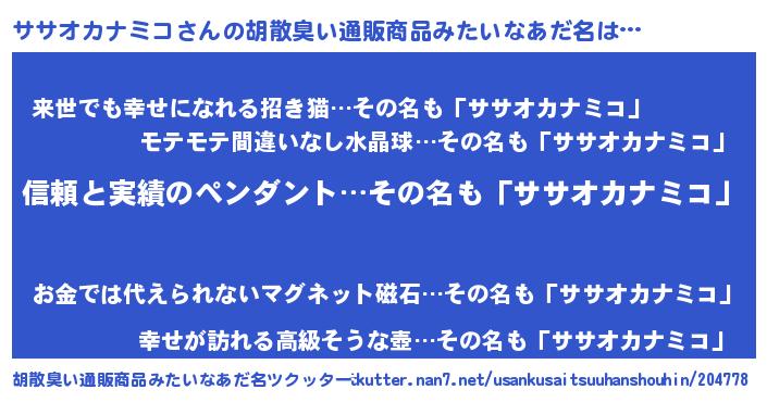 | ヘコむあだ名 | 『ササっちょ』『ササオカナミコ(小並感)』 |