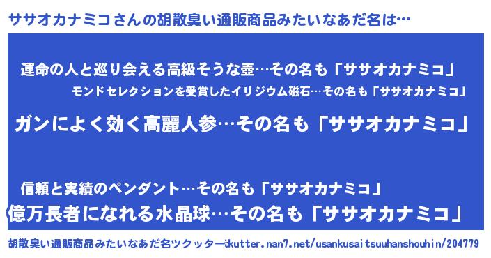 | 意味不明あだ名 | 『自称ササオカナミコ』 |