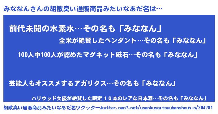 | ヘコむあだ名 | 『みななん(小並感)』『みなっちょ』 |