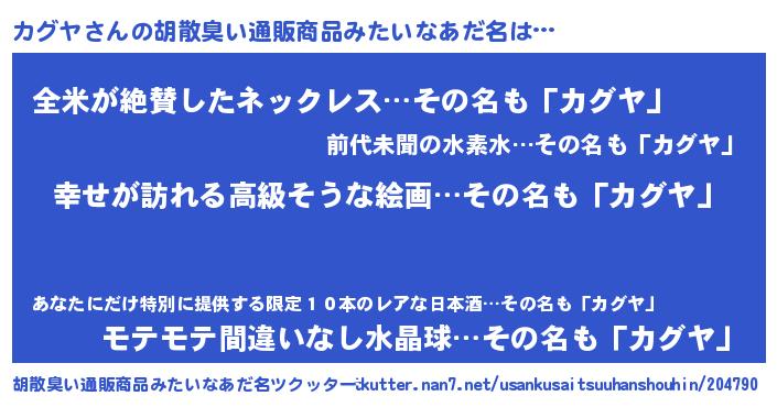 | 欧米人風あだ名 | 『カグヤクリステル』『ウサインカグヤ』 |