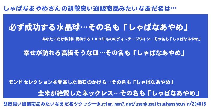 | ファンタジー風あだ名 | 『エターナルシャバナアヤメー』 |