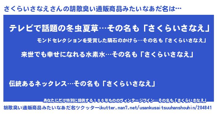 | 意味不明あだ名 | 『永久保存さくらいさなえ』 |
