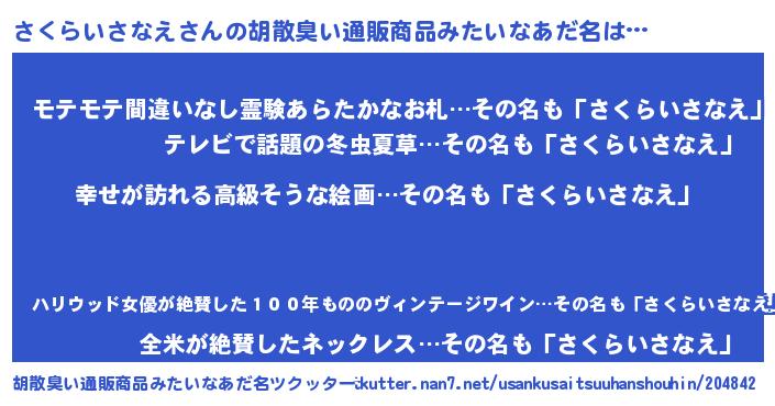 | 意味不明あだ名 | 『さくらいさなえフォーエバー』 |