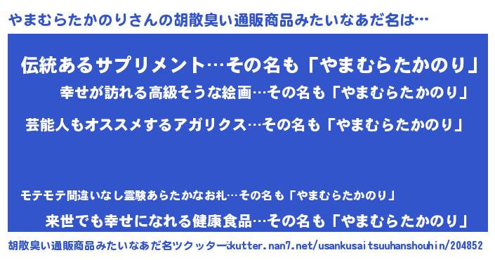 | ヘコむあだ名 | 『やま太郎』『やまむらたかのり(笑)』 |