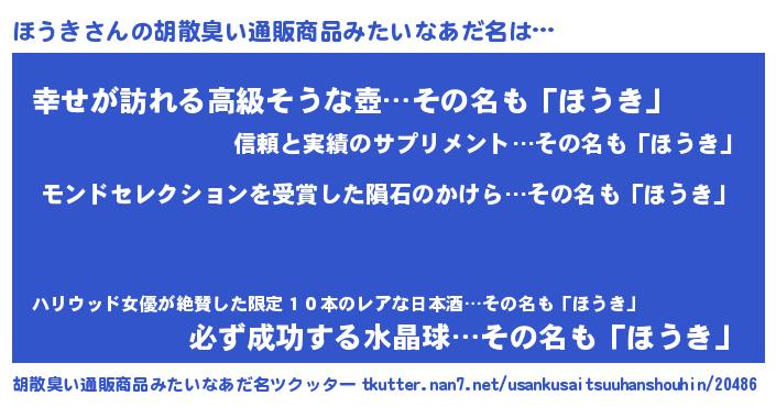 | ヒーロー風カッコイイあだ名 | 『慈愛の使者ほうき』『スーパーホウキ』 |