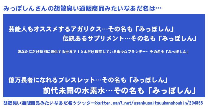 | 意味不明あだ名 | 『住所不定無職みっぽしん(77歳)』 |