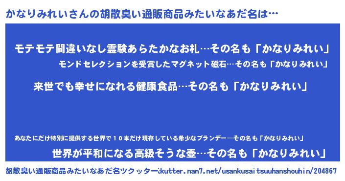 | ヘコむあだ名 | 『かなりみれい(爆)』『かなもー』 |