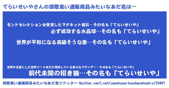 てらいせいやさんの胡散臭い通販商品みたいなあだ名をツクッター!