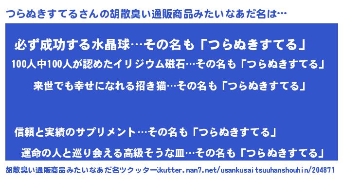 | 恥ずかしいあだ名 | 『つらちん』『プリティーつらぬきすてる』 |