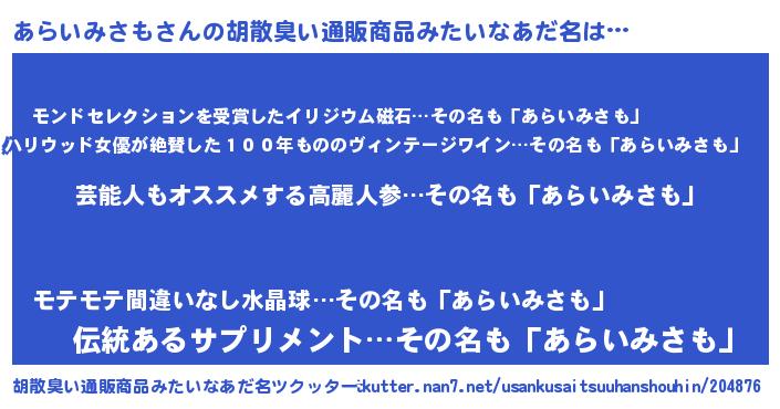 | 意味不明あだ名 | 『自称あらいみさも』 |