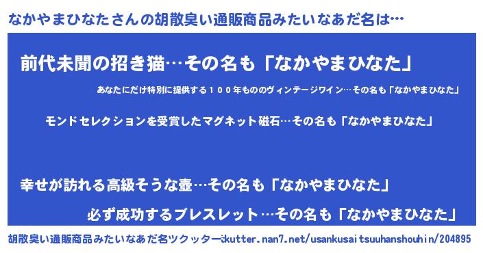| ヘコむあだ名 | 『なかやまひなた(笑)』『なかもー』 |