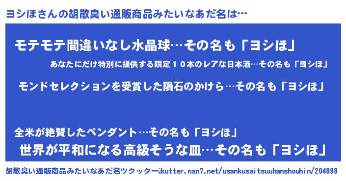 | ヒーロー風カッコイイあだ名 | 『慈愛の使者ヨシほ』『スーパーヨシホ』 |