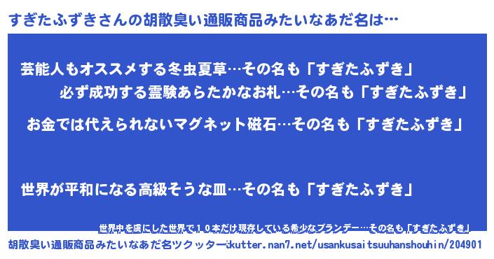 | 男性向けラノベタイトル風あだ名 | 『おまえをオタクにしてやるから、俺をすぎたふずきにしてくれ! 』 |