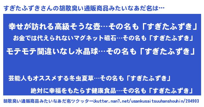すぎたふずきさんの胡散臭い通販商品みたいなあだ名をツクッター!