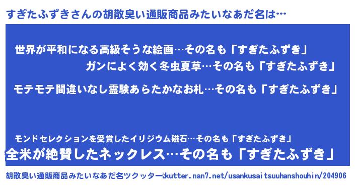 | 男性向けラノベタイトル風あだ名 | 『スギタフズキアートオンライン』 |