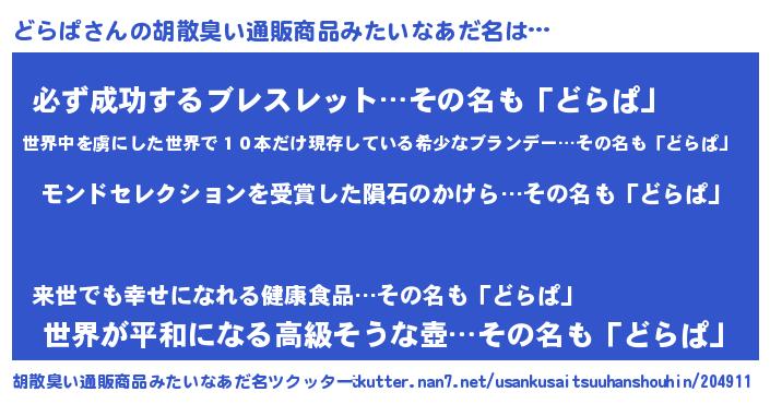 | 欧米人風あだ名 | 『トリンドルどらぱ』『ダニエルどらぱ』 |
