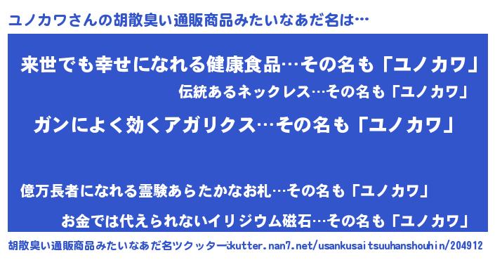 | 意味不明あだ名 | 『自称ユノカワ』『永久保存ユノカワ』 |