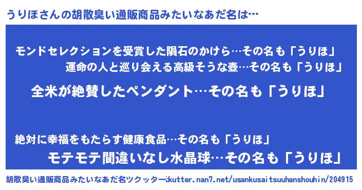 | 意味不明あだ名 | 『とにかく怪しいうりほ』 |