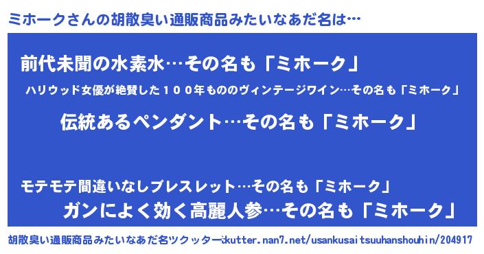 | 欧米人風あだ名 | 『トリンドルミホーク』 |