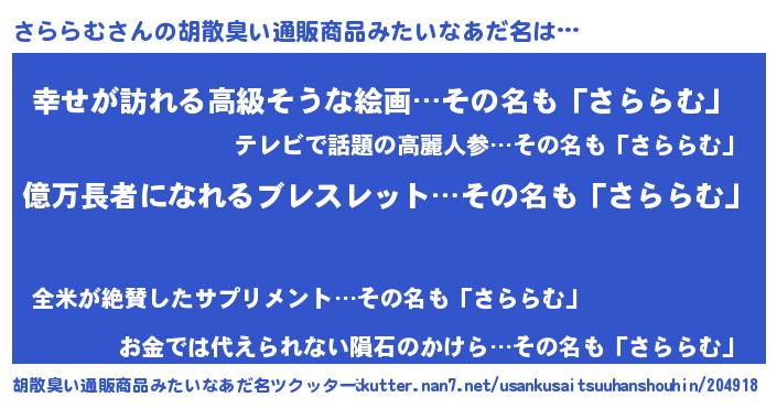 | 意味不明あだ名 | 『ペロリンさららむ』『自称さららむ』 |