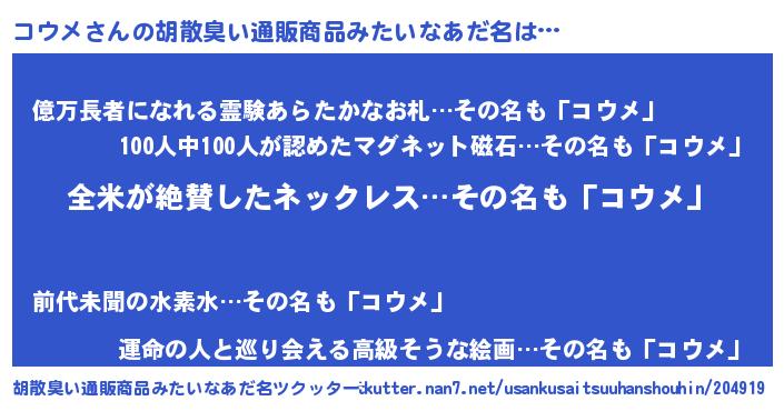 コウメさんの胡散臭い通販商品みたいなあだ名をツクッター!