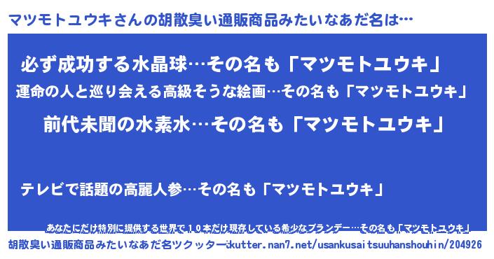 | ヘコむあだ名 | 『マツモトユウキ(遠い目)』『マツもー』 |