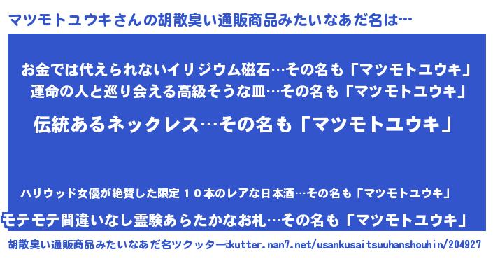 | ポケモン風あだ名 | 『メロマッツ』『ヒマツモトユウキ』 |