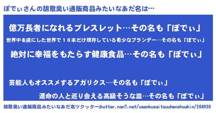 | ヘコむあだ名 | 『ぽでぃ(爆)』『ぽでっふぃ~』 |