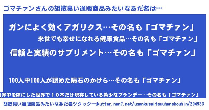 ゴマチァンさんの胡散臭い通販商品みたいなあだ名をツクッター!