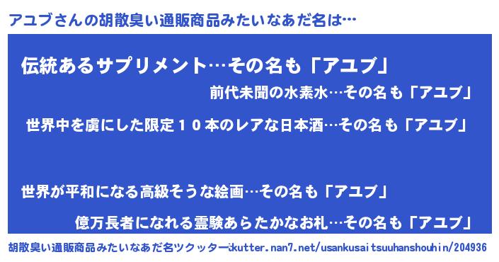 | 意味不明あだ名 | 『住所不定無職アユブ(56歳)』 |